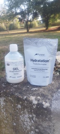 Sortie vélo le midi 400g de Gel neutre endurance et 35g d'électrolytes 40g de pâte de fruits 2 Red bull un coca et un Mars et ça repart 🤣