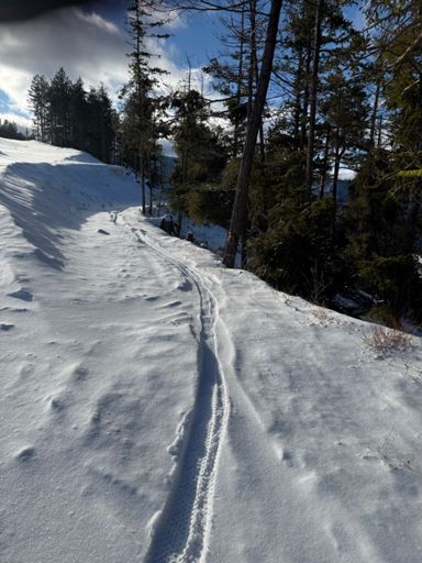 Squilly with some trail breaking.