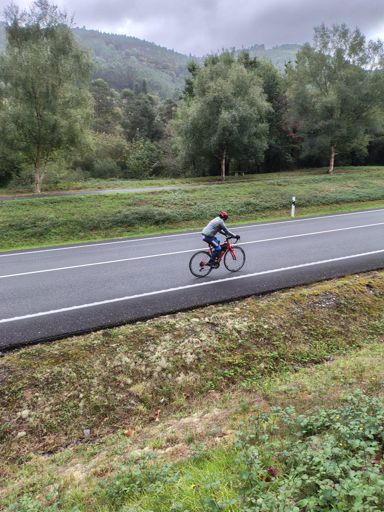 10 Etapa Luarca-Lugo 134 km solo pude hacer 98 Km la lluvia salió de nuevo y me tuve que bajar, me encontré un rumano que hacía Rumanía,Santiago y luego Tarifa ,ese está peor que yo. Llevo 1170 Km acumulados