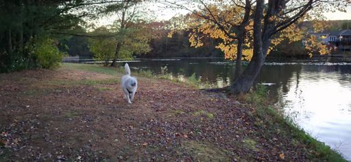 Ran out of gas picking up pine needles, so took the pup for a walk.