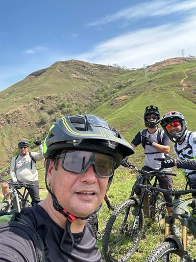 Pedalada de mountain bike ao entardecer