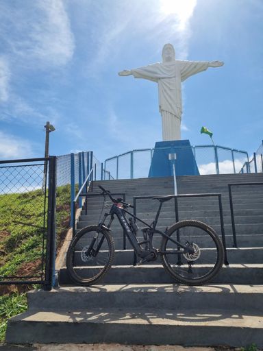 Pedalada em mountain bike elétrica matinal