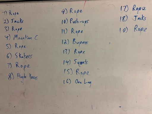 Workout; 1 min x 30 sec rest