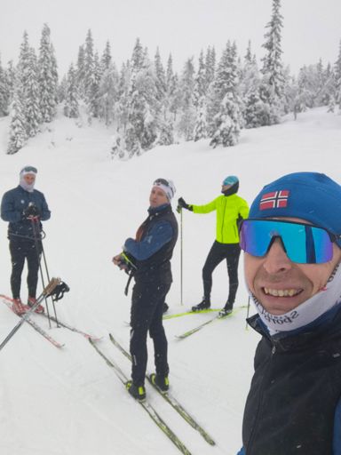 View NordicSkiLunch Nordic Ski Staking Erte-Kula-Erte med kakelaget. 3 kjørte hele veien og 2 snudde ca halvveis.