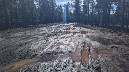 muddy forest road adventure