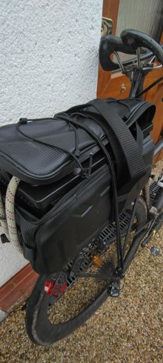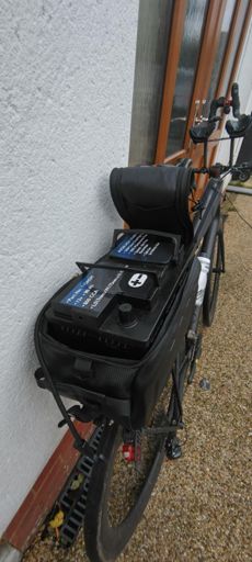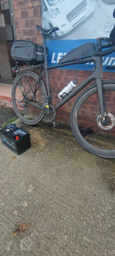 Don't try this at home. Van battery pickup with road bike