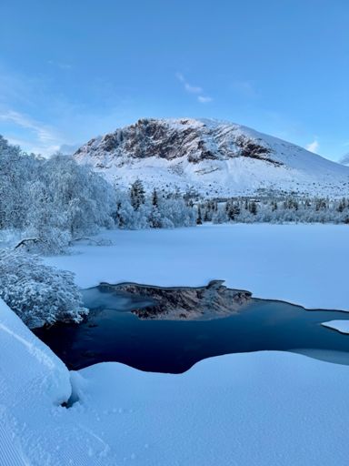 Hulbak i nysnø og sol
