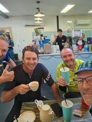 View RideIGA Coffee was the only choice ☕️ (Wouter: "No Thanks" 🚫😅) The rest of us were desperate enough to try it out🫣. (Verdict: Not too shabby👍)