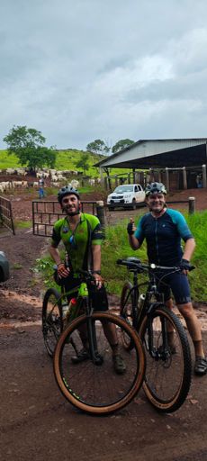 Pedalada de mountain bike ao entardecer