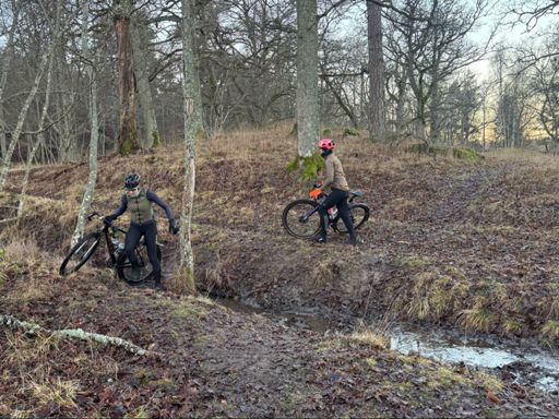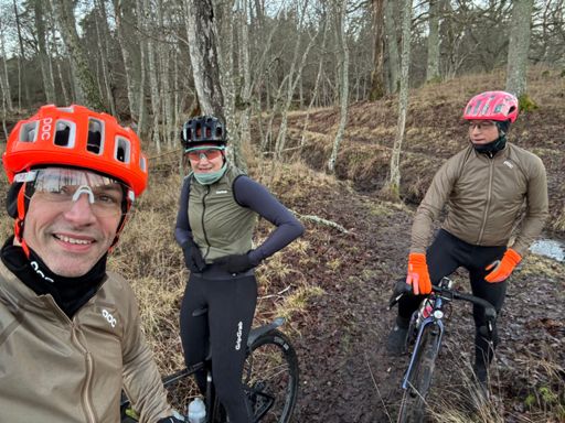 Group road ride in treacherous wet and icy conditions