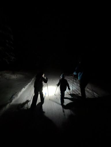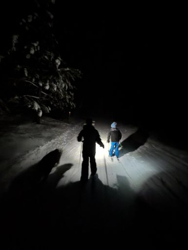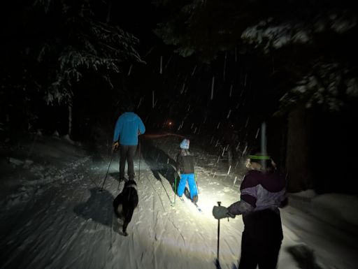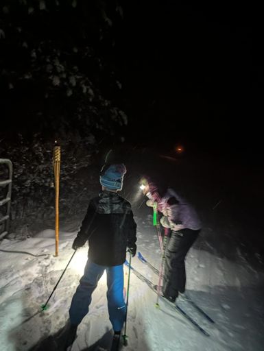 Tiki torch family cross country ski