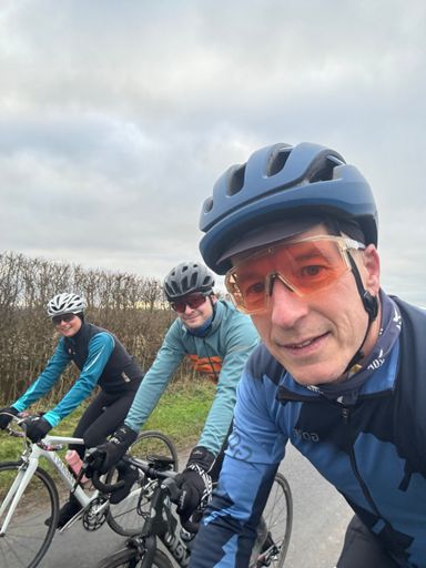 Morning ride - 11 solo on sketchy icy back roads, then the rest with Damian & Dan on main roads
