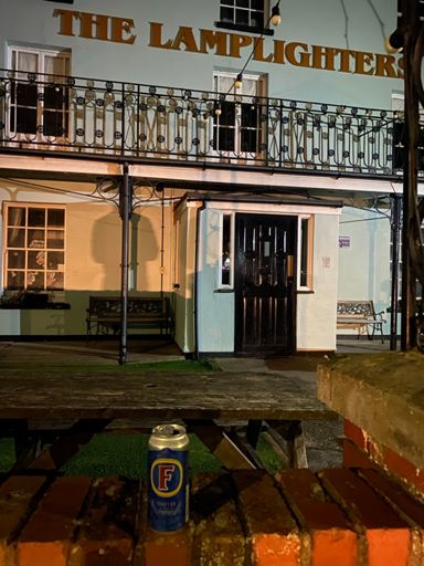 From the Lamplighters, but the fucking pub shut at 8.30 when we got there, so out with the emergency cans