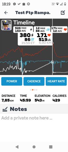 Test FTP rampa. Rower TT 165 mm