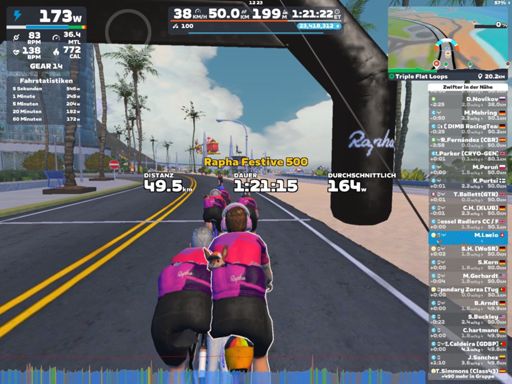 Zwift - Group Ride: Rapha Festive 500 with Miguel @ 1.8 W/KG on Triple Flat Loops in Watopia