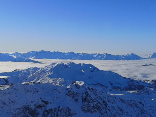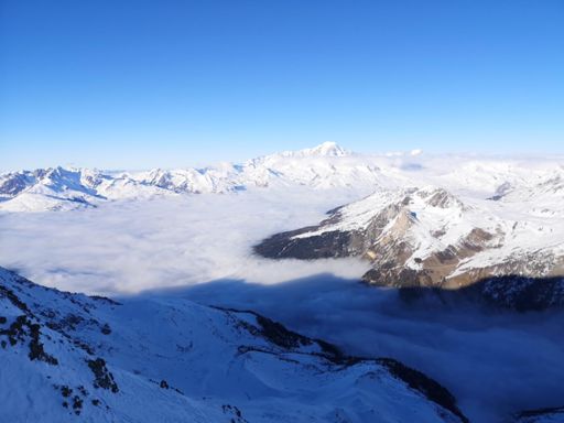 Sunny skiing above the clouds