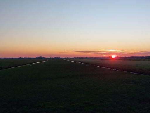 Kerstmisrit naar huis met wind mee en ondergaande zon