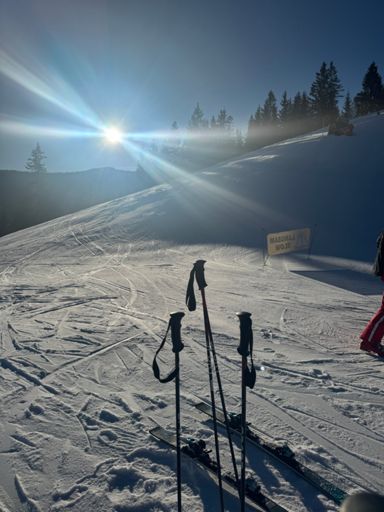 Skiabfahrt am Morgen