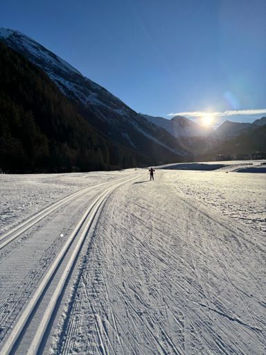 Skiabfahrt am Morgen
