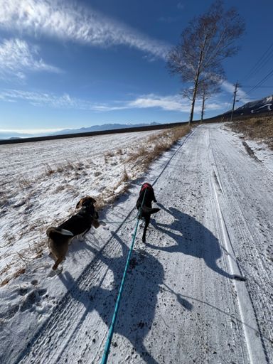 Snowy gravel run with Guinny and Roopy