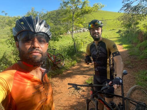 Pedalada de mountain bike ao entardecer