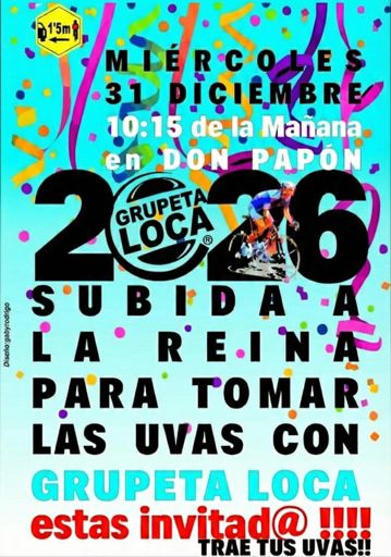 Quedada grupeta loca pa tomar las uvas 🍇 estais tod@s invitados MIERCOLES 31 ALAS 10:15 DON PAPON SUBIDA ALA REINA 👑