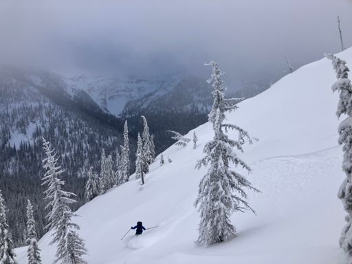 Discovered a great new-to-us chute off Baldie