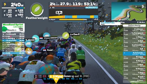 View VirtualRideZwift - Group Ride: Rapha Festive 500 with Miguel @ 1.8 W/KG on Triple Flat Loops in Watopia