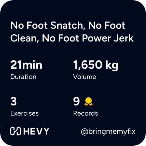Technical Work: No Foot Snatch, No Foot Clean, No Foot Power Jerk. Snatch started bad, finished good.