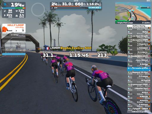 Ride #2 - Group Ride: Rapha Festive 500 with Maria @ 2.2 W/KG on Triple Flat Loops in Watopia