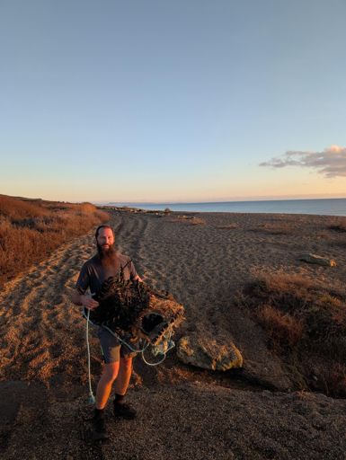Run along the beach with my brother and a bonus lobster pot!