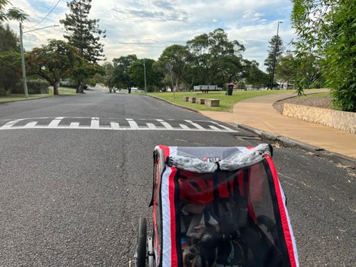Afternoon Gravel Ride - the Munchkin and the woofer get a nice dry ride.