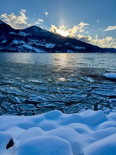 Schneeschuhtour/ Wanderung mit Dame am Alpsee
