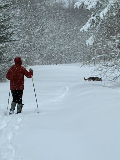 Breaking trail with Annie, fresh tracks!