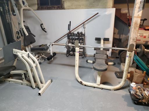 Weight lifting session in the basement. Been doing work there, so I was able to reconfigure for more efficiency. Kimber was once again my lifting partner - kinda sorta.
