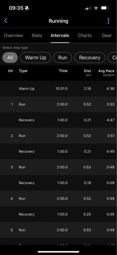 Session 1: 8x2min @ sub 4min/km R:1min