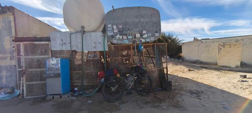 View MountainBikeRideLocura de viento y arena contra mi calva, gasolinera abandonada y refugio improvisado