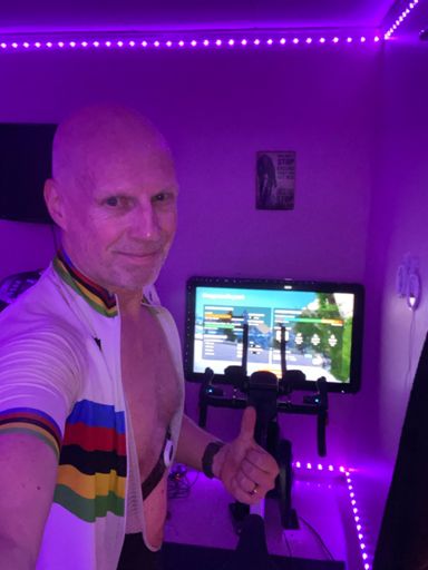 View VirtualRideAfternoon Run kort pass i -12 grader då fick det bli värmeväxlarmask , lite tyngre att andas men mycket varmare luft.