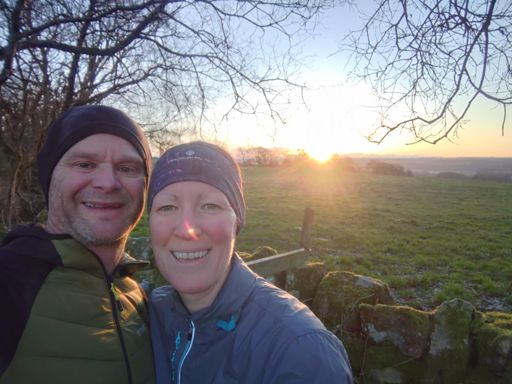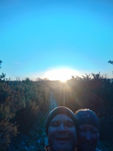 Moon going down to sun coming up on the trails with Jacqui.