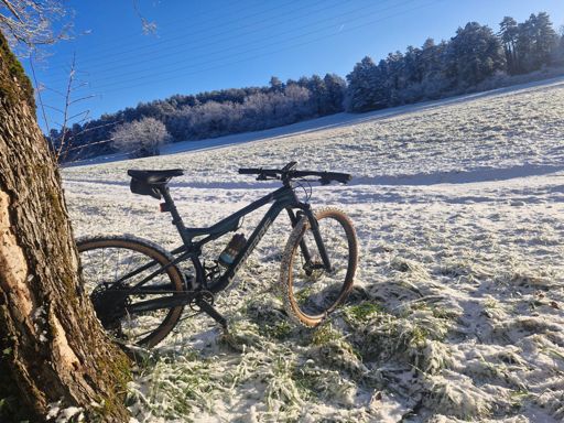 Sortie VTT le matin avec la neige et le soleil