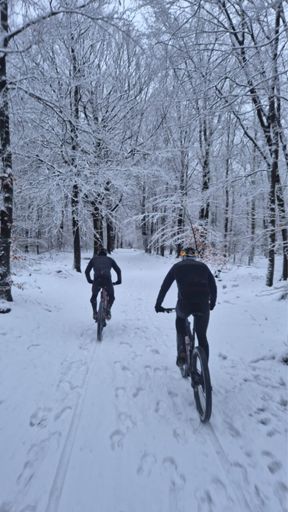 mountainbike in de sneeuw