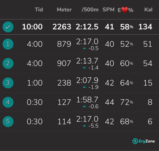10 x 4 min SkiErg @ Olas gym