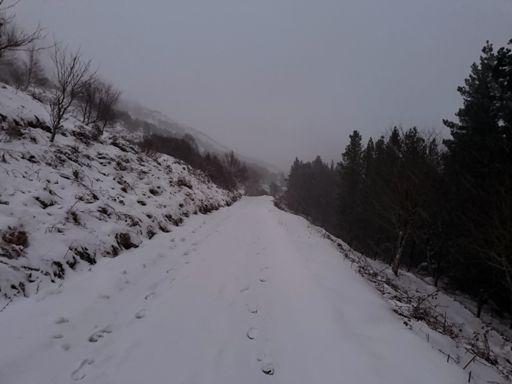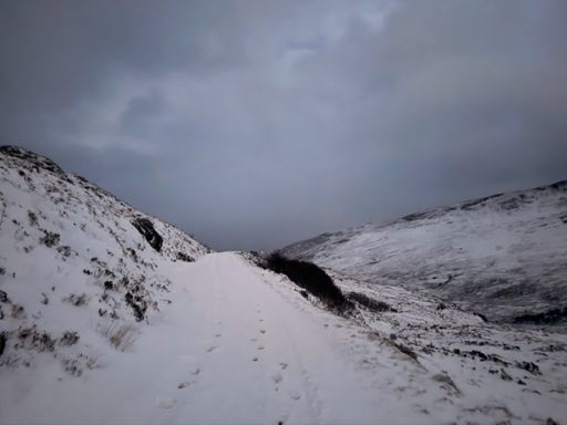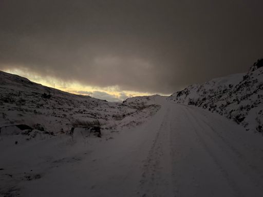 Even proper’er snow. Generally about 18inches but fell into a few drifts. Entire 7 mile road is like this