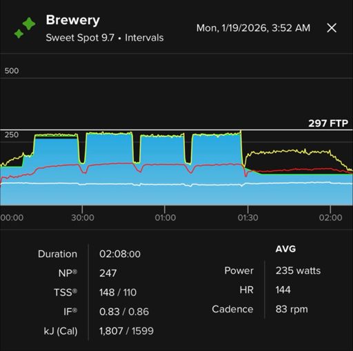 4×16〜18min @ SS & Heat Training Brewery (SweetSpot7.9→9.7) DAY98 BASE4-2