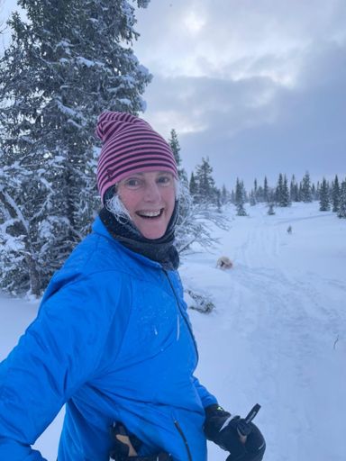 Morning Hike, Sara on skis.