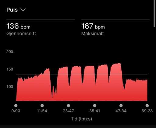 Woodway: 7 x (4min on / 1min off)