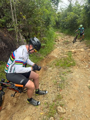Pedalada em mountain bike elétrica matinal