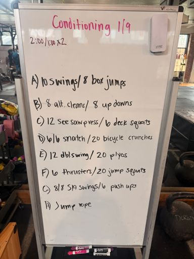 Kettlebell conditioning + 100 pushups + 100 wall balls