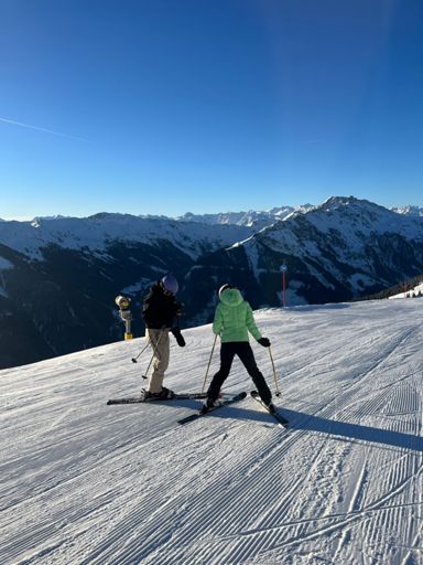 Skiabfahrt am Morgen