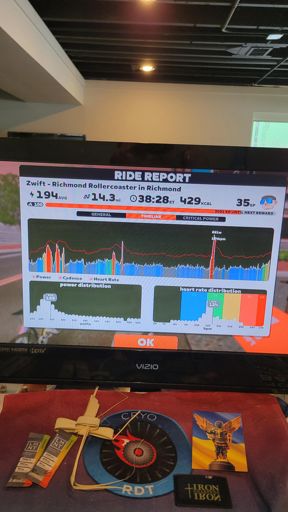 Zwift - Richmond Rollercoaster - another ride short on time this morning so mostly easy to prep for TTT. Legs were fine and breathing still seems like bronchitis symptoms so just hoping to keep things under wraps tomorrow as long as possible